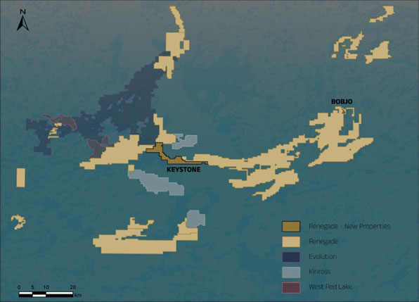 The BobJo Property will be advanced as part of the Company’s Confederation Project, while the Keystone Property expands Renegade’s contiguous holdings between Red Lake Main, Gullrock, and Confederation properties, further strengthening the Company’s position across both the Red Lake and Confederation greenstone belts.